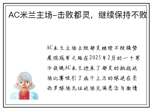 AC米兰主场击败都灵,继续不败:强势展现冠军之路 在2025年2月的一个寒冷夜晚,AC米兰迎来了都灵的挑战,这场比赛吸引了成千上万的球迷在圣西罗球场见证这场充满悬念与激情的较量。对于AC米兰来说,这场比赛不仅仅是一次常规的联赛对决,它关乎球队能否继续保持不败战绩、保持与顶尖球队之间的竞争力,也关乎球...